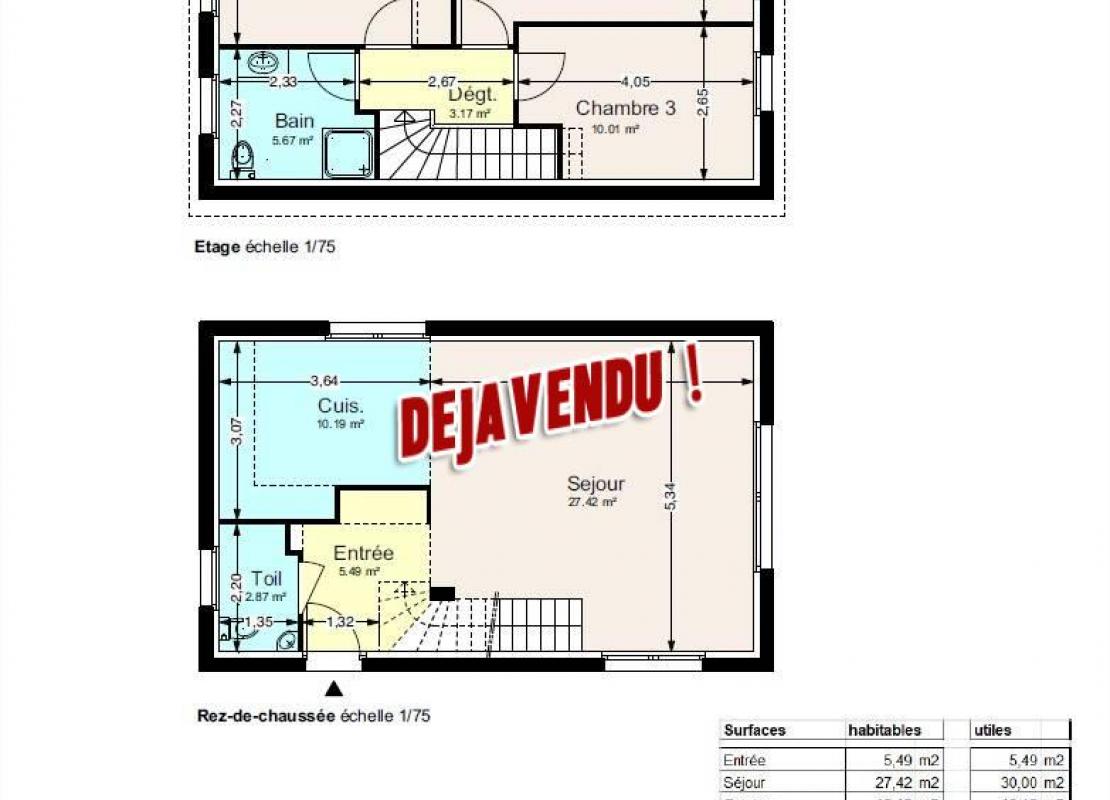 Au Rez de chaussé : Salon-séjour ouvert sur la cuisine de 37m2 + entrée et toilette.