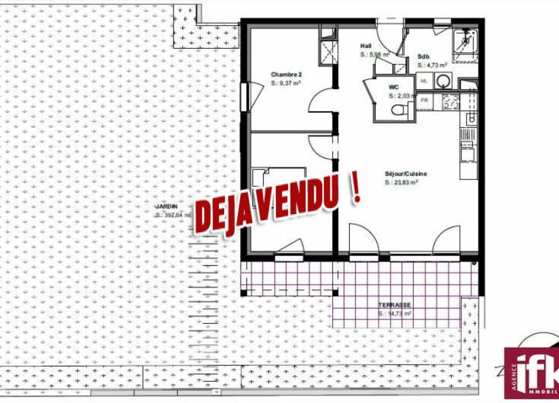 Surface de 57m2 comprenant un jardin de 4 ares orientée Ouest.