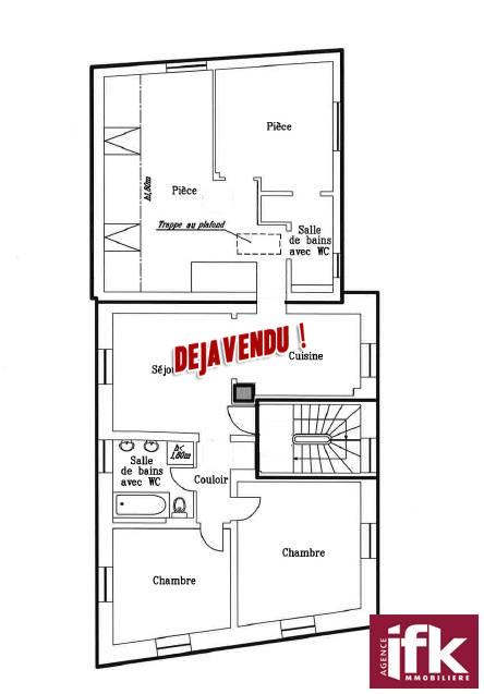 Descriptif: Muntzenheim centre – Appartement T4/T5 de 92m2 habitable et 99m2 sol situé au 1er étage d’une copropriété de 3 appartements.