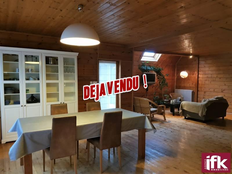 Descriptif: Fortschwihr sur une parcelle de 6.80 ares, belle maison de 1998 type chalet de 150m2 sol et 137m2 habitable comprenant :