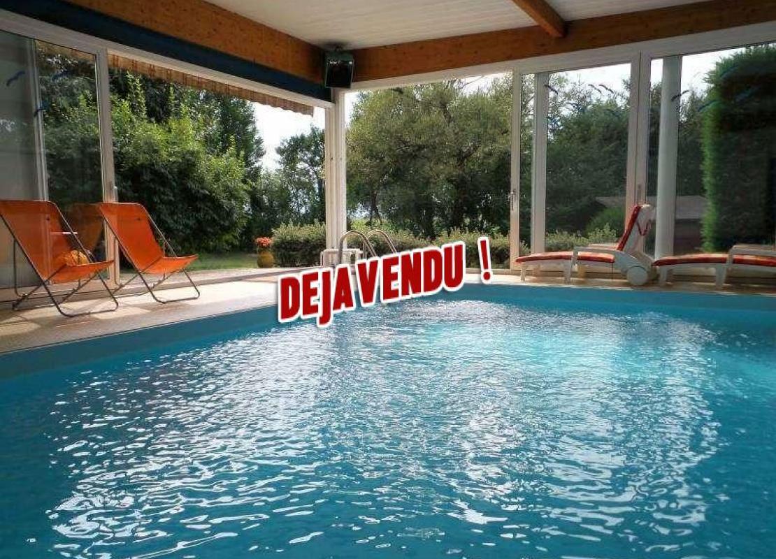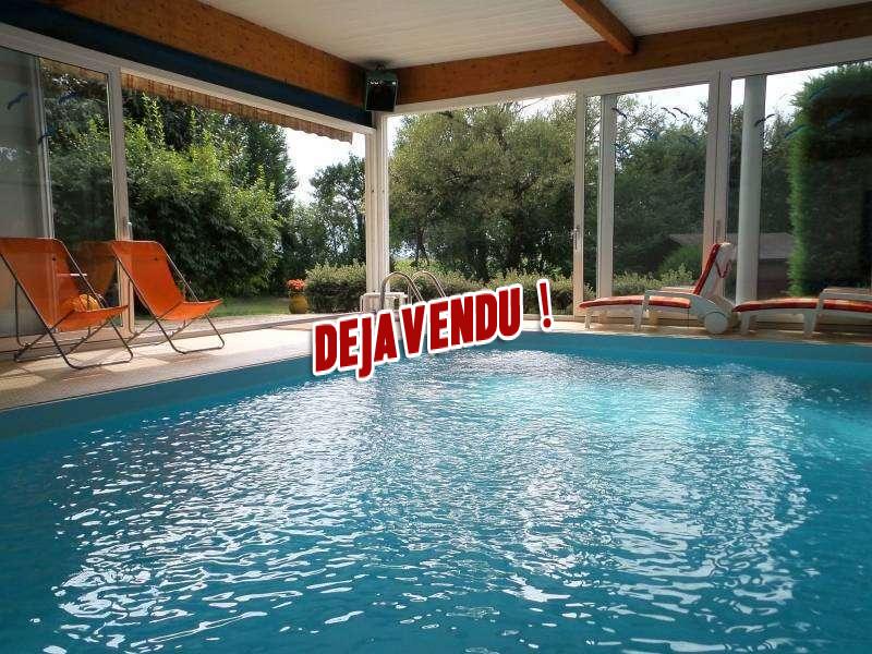 Une piscine couverte 10X4 chauffée avec porte coulissante donnant sur l’extérieur.