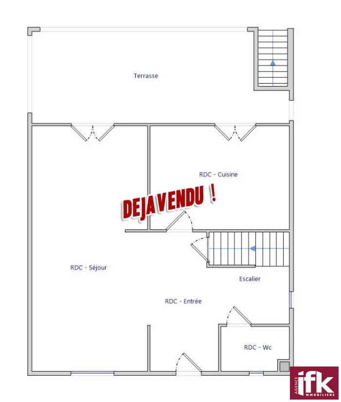 Au rez de chaussé : Une entrée avec placards, un salon-séjour avec un accès sur une terrasse, un cuisine équipée et un toilette.