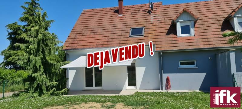 A Andolsheim, en exclusivité, nous vendons cette très belle maison mitoyenne, lumineuse et au calme, construite en 2007, d'une surface de 127m2 sol (103m2 habitables) sur un terrain de 4.11 ares, comprenant une allée, un stationnement extérieur et un jardin avec une belle vue dégagée.