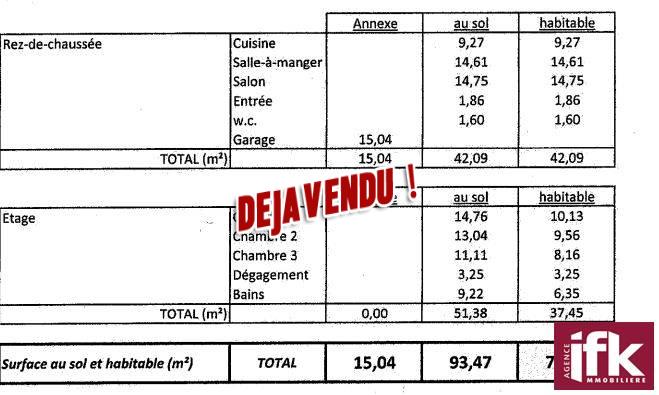 La maison qui bénéficie également d’un garage de 15m3 (entrée via la cuisine) est proche des commerces de proximité d’une école primaire et d’un collège.