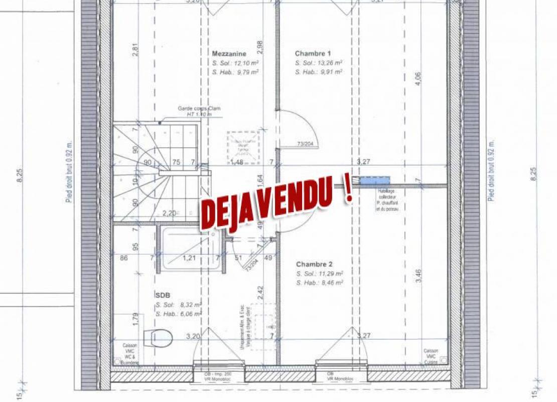 À l’étage : Deux chambres, une salle de bain et une mezzanine pouvant être transformée en troisième chambre