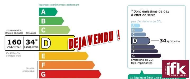 DPE : D - 160 kwh/m2/an d’énergie primaire / 154 Kwh/m2/an d’énergie finale