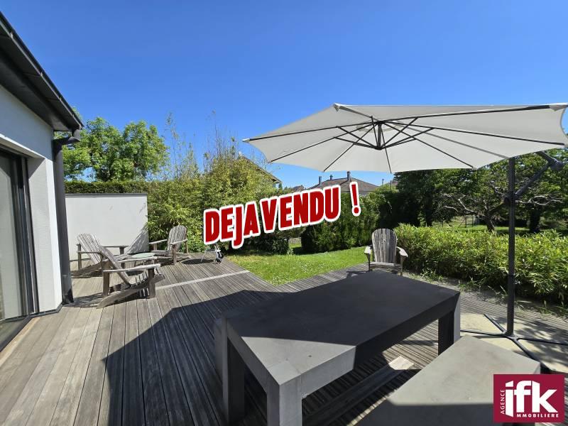 Concernant les extérieurs, une terrasse bois de 45m2 constitue une véritable extension de l’espace de vie. Le jardin est entretenu, arboré et permet la construction éventuelle d’une piscine.