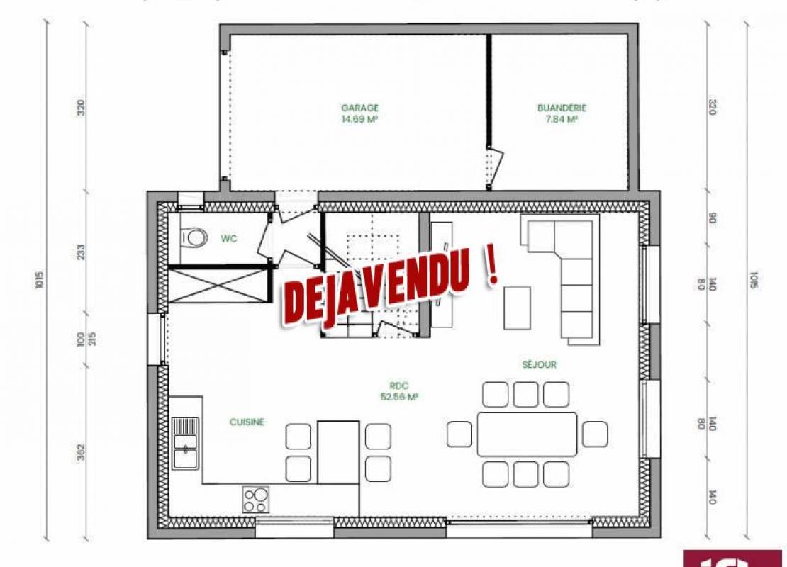 Un garage de de 14m2 + une buanderie de 8m2