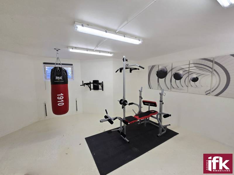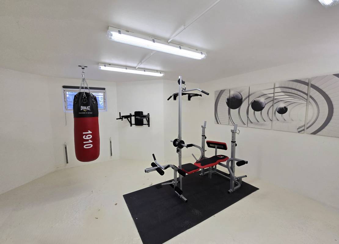 Salle de sport, cellier, chaufferie, local technique et garage double.