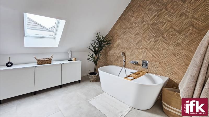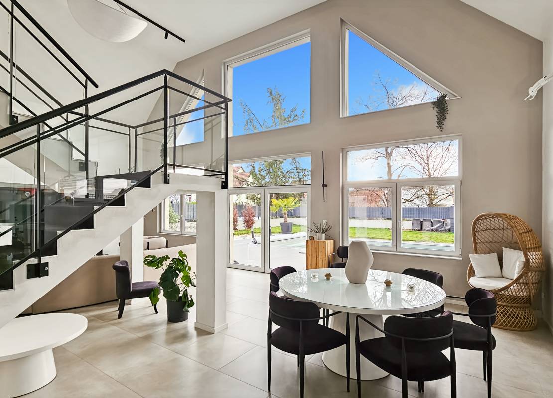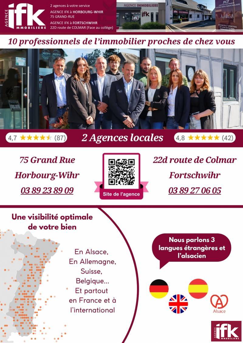 Descriptif: A 10 minutes de Colmar, dans la commune de Fortschwihr , nous proposons à la vente, cette belle maison en ossature bois construite en 2022, contemporaine qui se distingue par ses volumes généreux. D’une surface de 193 m², elle dispose de 6 pièces lumineuses et offre un cadre de vie au calme, tout en restant proche des commodités essentielles.