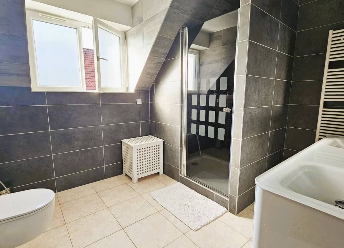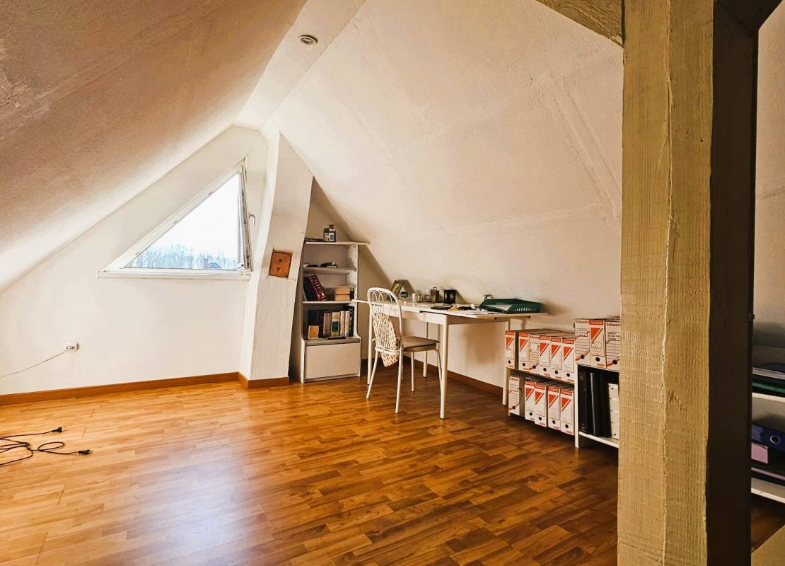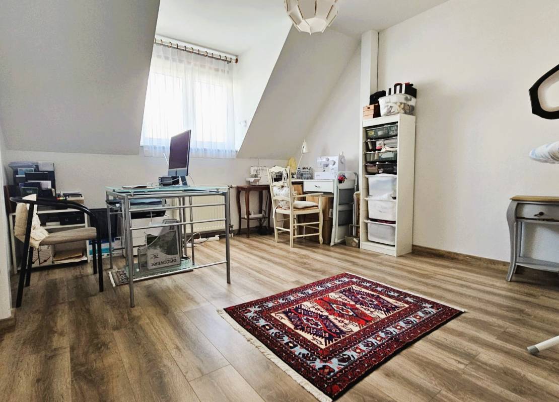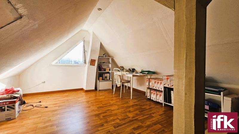 À l’étage, vous trouverez quatre chambres spacieuses d’environ 14 m², 12 m², 15 m² et 20 m², une seconde salle d’eau avec toilette, ainsi qu’un accès aux combles par escalier escamotable permettant d’aménager un espace bureau et/ou du rangement complémentaire.