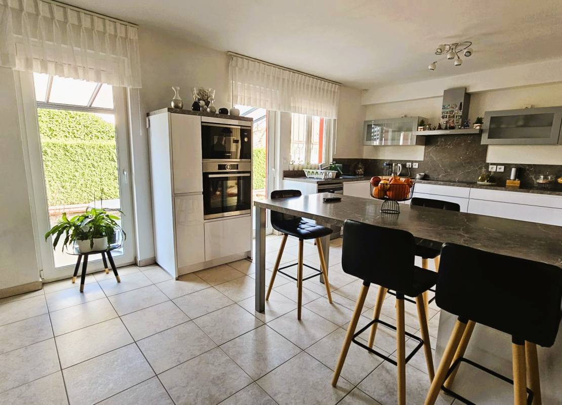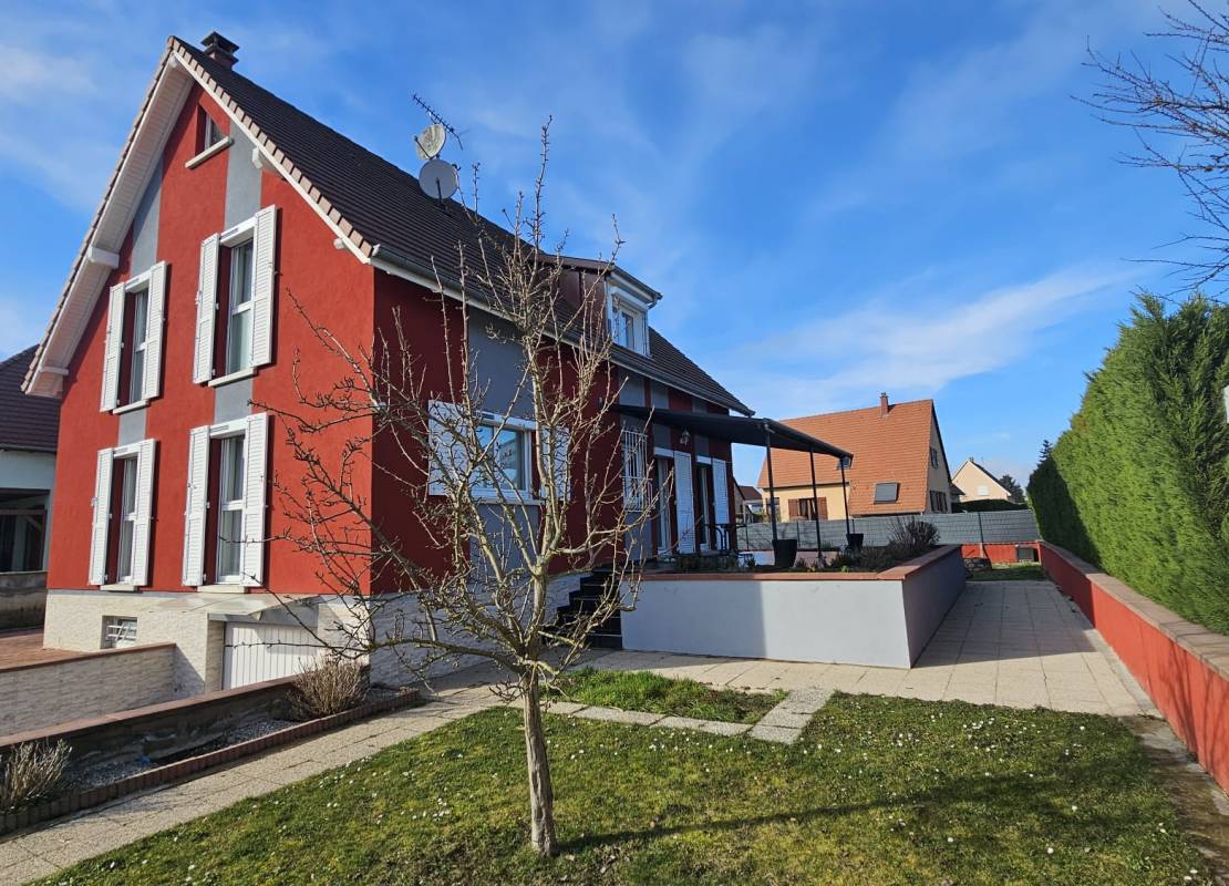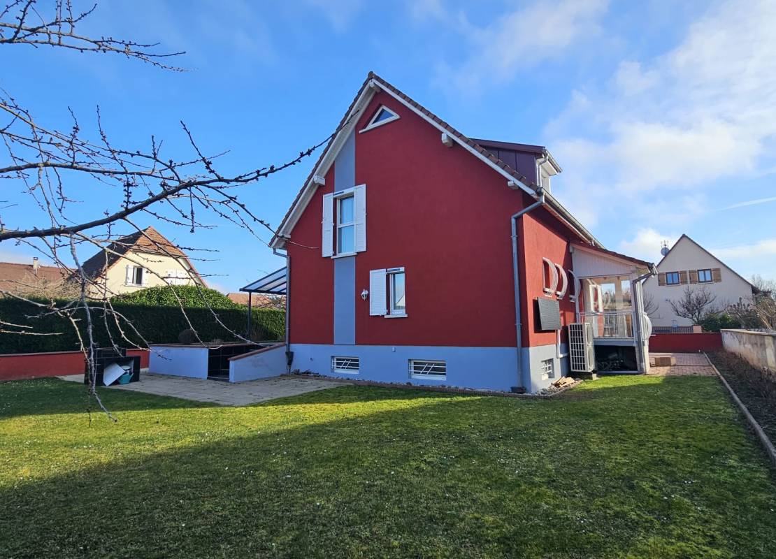 À Bennwihr, dans un quartier calme et résidentiel, nous vous proposons en exclusivité cette maison individuelle construite en 2002, développant une surface de référence de 147 m² (155 m2 environ au sol) répartie sur quatre niveaux et implantée sur un terrain de 7 ares.
