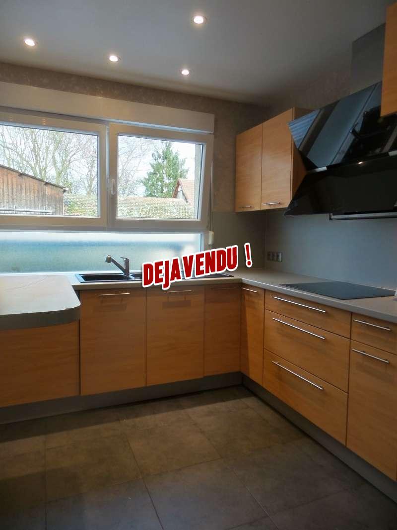 Descriptif: Jebsheim – Maison de plain pied de 88m2 habitable composée d’une entrée, d’un séjour avec accès terrasse, 3 chambres, une salle de bain avec douche et baignoire.