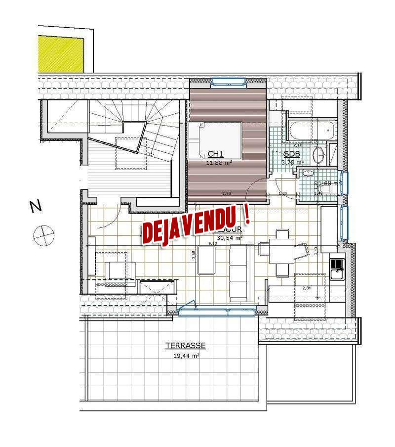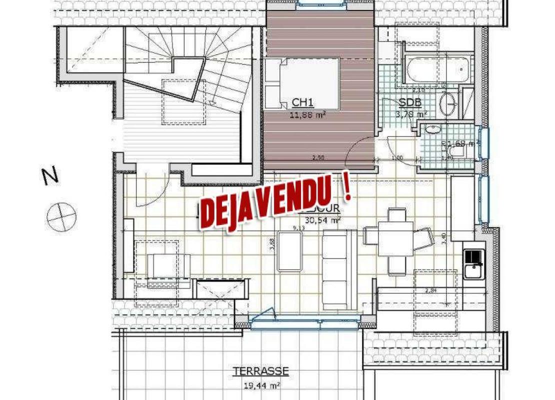 Chambres de 12m2.Terrasse de 19m2. Exposition Sud.